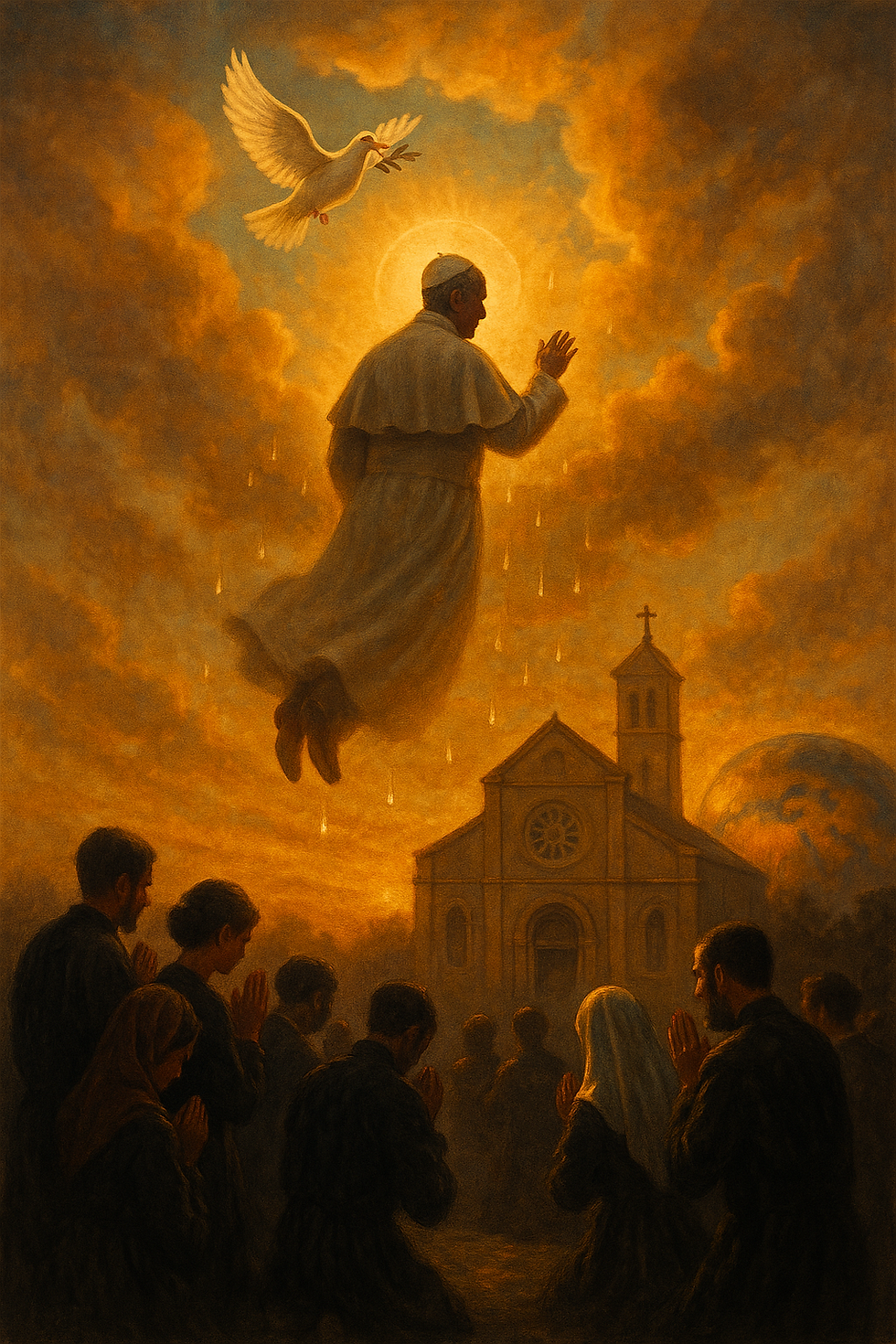 Sanctus Franciscus, humilis pastor et defensor pauperum, vitam egit exemplari caritatis et misericordiae. Nunc ascendit ad caelum, relinquens terrena concilia in lacrimis spei et pacis. Convenimus hodie ad memoriam eius laudandum et donum eius in cordibus nostris aeterne retinendum.